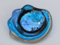 Die Midnight Serie wird vor der Glasbläserlampe gestaltet. Feines Blattsilber und Aventurin werden mit Farbglas überzogen und danach geformt.