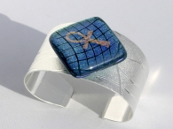 Der Aufsatz misst ca. 3 x 3 cm und ist auf einer rhodinierten Tombak-Spange befestigt.