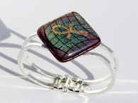 Der Aufsatz misst ca. 3 x 3 cm und ist auf einer versilberten Tombak-Federpange befestigt. Das Scharnier befindet sich gegenüber des Aufsatzes.